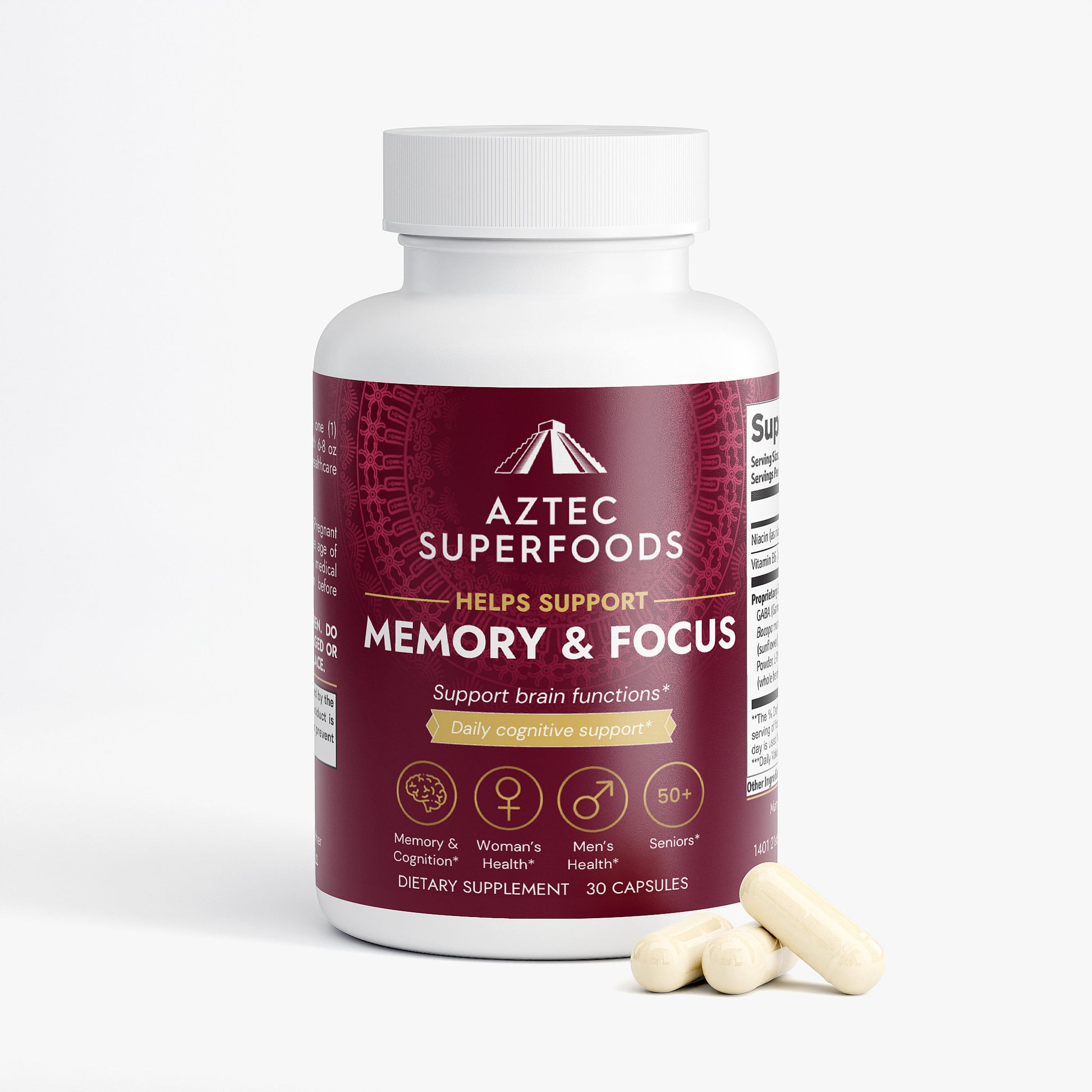 This cognitive enhancement supplement is designed to support brain functions through a blend of natural compounds. It combines Niacin, Vitamin B6, GABA, L-Tyrosine, and other key ingredients like Bacopa monnieri and Huperzine A, aimed at promoting mental clarity, focus, and cognitive performance. Ideal for daily use, this supplement is dedicated to supporting your brain's health and enhancing cognitive functions using high-quality, natural ingredients, without artificial additives.*